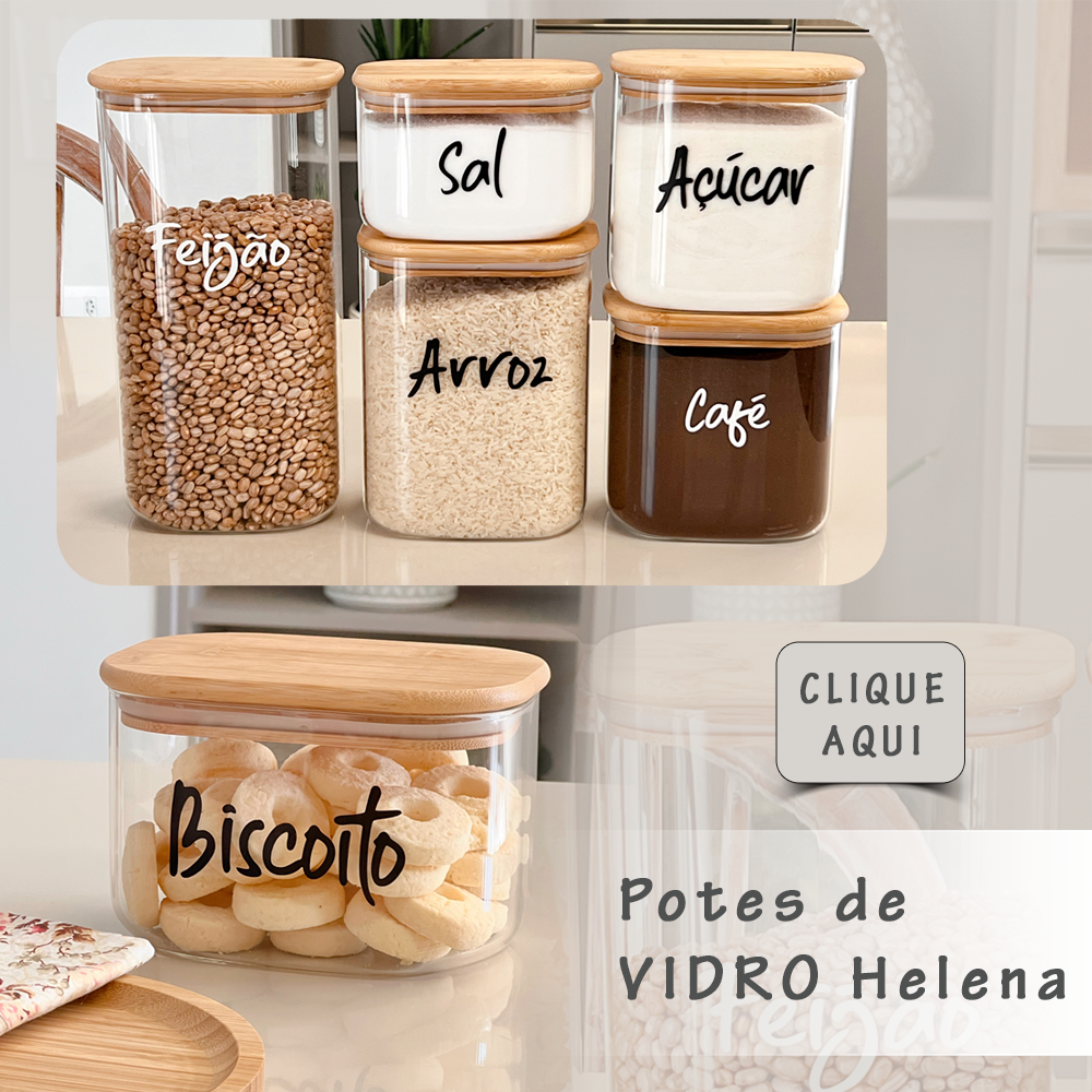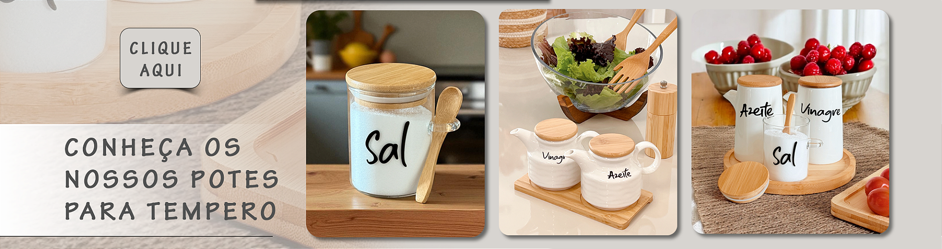 KIT 2 POTES 750ML COM TAMPA COLHER E BANDEJA DE BAMBU STYLE