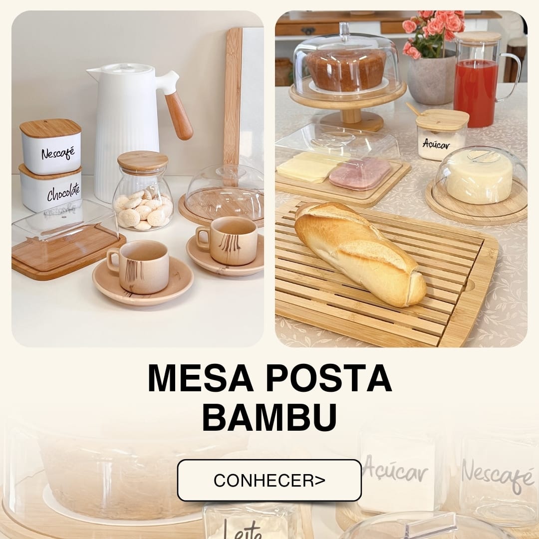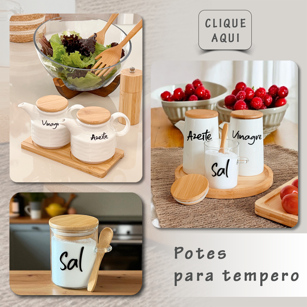 KIT 2 POTES 750ML COM TAMPA COLHER E BANDEJA DE BAMBU STYLE
